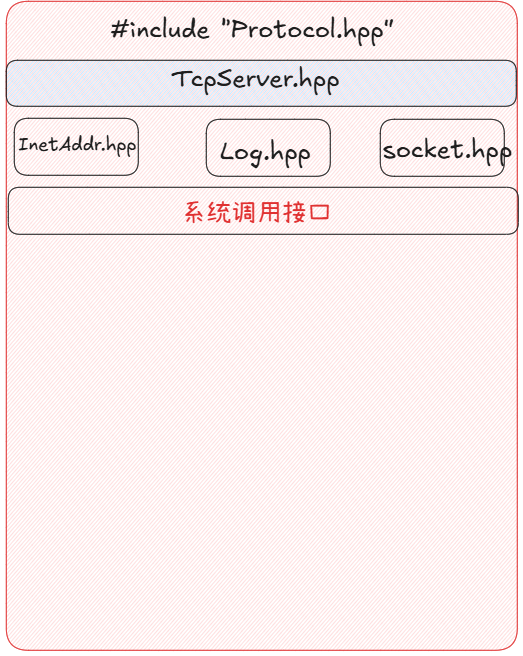 int defaultfd = -1;class TcpSocket : public Socket{public:TcpSocket() : _sockfd(defaultfd){}TcpSocket(int fd) : _sockfd(fd){}~TcpSocket() {}void SocketOrDie() override{// 创建socket_sockfd = ::socket(AF_INET, SOCK_STREAM, 0);if (_sockfd < 0){LOG(LogLevel::FATAL) << "socket error";exit(SOCKET_ERR);}LOG(LogLevel::INFO) << "create socket success";}void BindOrDie(uint16_t port) override{InetAddr localaddr(port);int n = ::bind(_sockfd, localaddr.NetAddrPtr(), localaddr.NetAddrLen());if (n < 0){LOG(LogLevel::FATAL) << "bind error";exit(BIND_ERR);}LOG(LogLevel::INFO) << "bind success";}void ListenOrDie() override{int n = ::listen(_sockfd, gbacklog);if (n < 0){LOG(LogLevel::FATAL) << "listen error";exit(LISTEN_ERR);}LOG(LogLevel::INFO) << "listen success";}std::shared_ptr<Socket> Accept(InetAddr *client) override{struct sockaddr_in peer;socklen_t len = sizeof(peer);// peer是一个输出型参数,用来接收客户端的地址信息int fd = ::accept(_sockfd, CONV(peer), &len);if (fd < 0){LOG(LogLevel::WARNING) << "accept warning ...";return nullptr; // TODO}client->SetAddr(peer);return std::make_shared<TcpSocket>(fd);}int Recv(std::string *out) override{char buffer[1024];ssize_t n = ::recv(_sockfd, buffer, sizeof(buffer) - 1, 0);// 当接收数据成功,我们把数据追加到缓冲区bufferif (n > 0){buffer[n] = 0;*out += buffer;}return n;}int Send(const std::string &message) override{return send(_sockfd, message.c_str(), message.length(), 0);}void Close() override{if (_sockfd >= 0)::close(_sockfd);}// 客户端主动发起连接int Connect(const std::string &server_ip, uint16_t port) override{InetAddr server(server_ip, port);return ::connect(_sockfd, server.NetAddrPtr(), server.NetAddrLen());}private:int _sockfd;};在main.cc中创建Tcp服务器的流程如下,是不是变得非常简单呢?