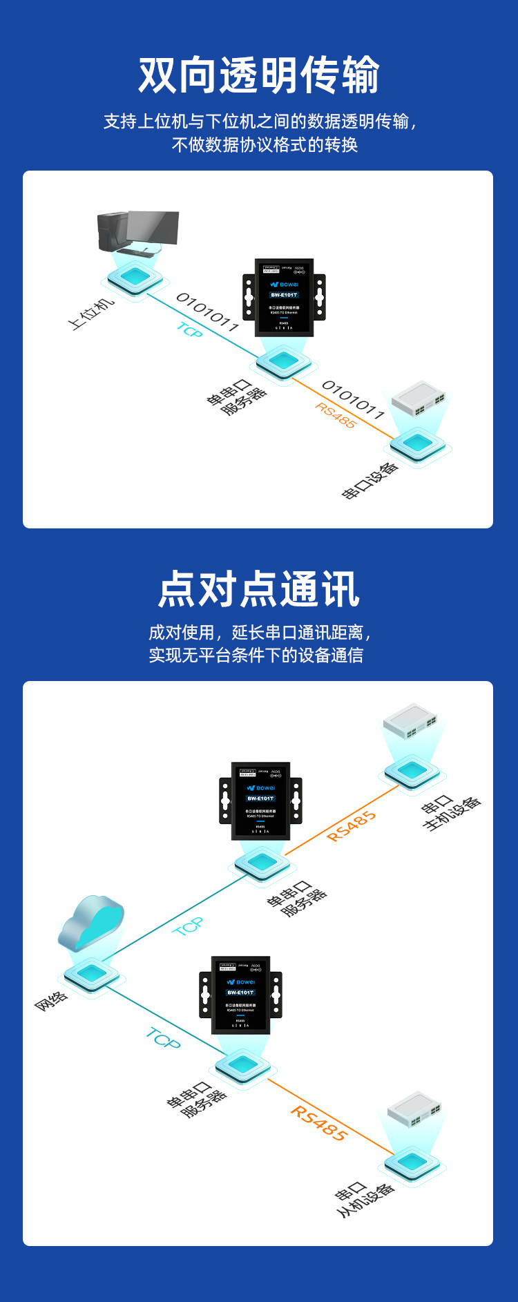 单串口服务器的核心在于其支持双向透明传输。它无需对数据协议格式进行任何转换,即可实现上位机与下位机之间的无缝通信。这种设计极大地简化了系统集成过程,用户无需额外开发复杂的通信协议,即可快速将传统串口设备接入现代网络环境。