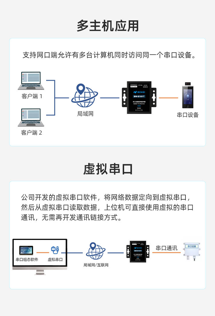 为解决上位机软件兼容性问题,单串口服务器配备了虚拟串口管理程序。通过该软件,用户可以将网络数据定向到虚拟串口,从而直接通过串口方式读取数据。这一功能使得现有的串口应用程序无需任何修改即可直接运行,显著降低了系统升级和开发的成本与周期。