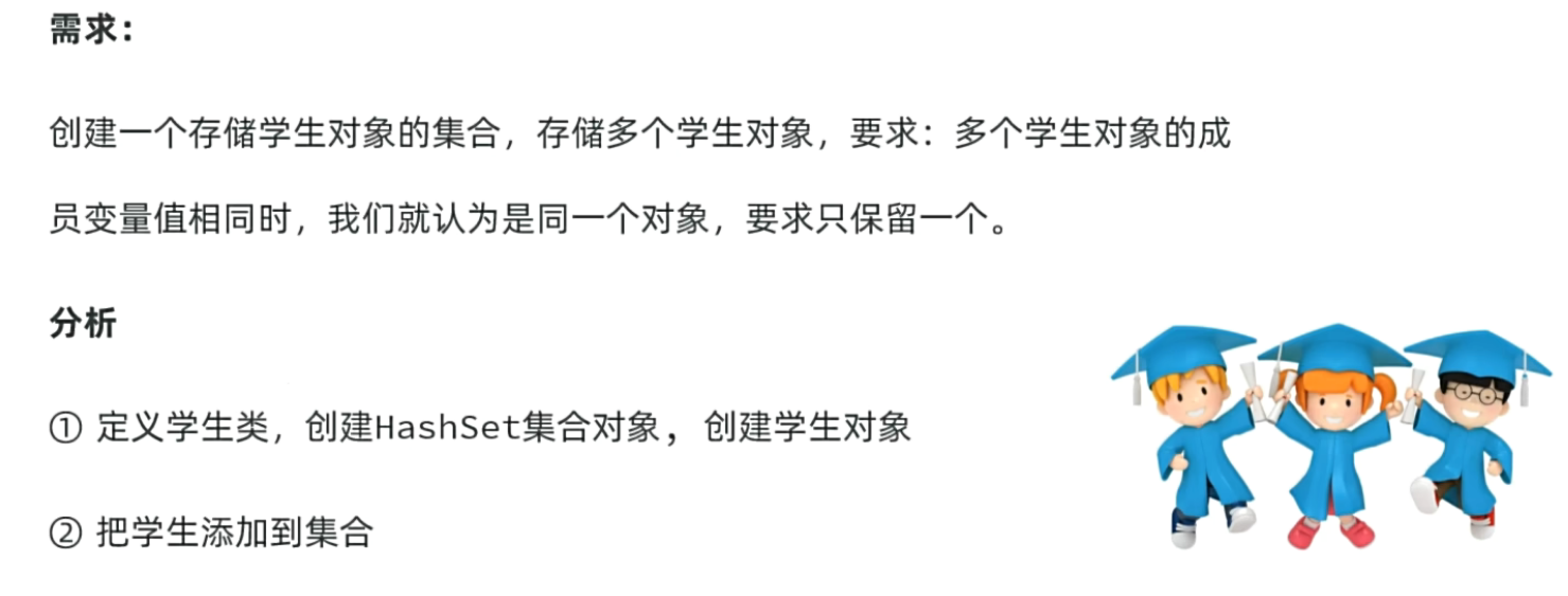 public interface SetDemo3 {public static void main(String[] args) {Student s1 = new Student("小王", 18, '男');Student s2 = new Student("小王", 18, '男');Student s3 = new Student("小颜", 18, '女');//创建HashSet集合HashSet<Student> set = new HashSet<>();set.add(s1);set.add(s2);set.add(s3);System.out.println(set); //发现并没有去重}