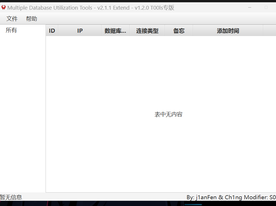 MDUT 全称 Multiple Database Utilization Tools,是一款中文的数据库跨平台利用工具,集合了多种主流的数据库类型。该工具基于前人的 SQLTOOLS 开发(向 SQLTOOLS 致敬),旨在将常见的数据库利用手段整合到一个程序中,打破各类数据库利用工具因依赖不同环境而导致使用不便的隔阂。此外,工具以 JAVAFx 作为 GUI 操作界面,界面美观。同时,程序支持多数据库同时操作,每种数据库相互独立,极大方便了网络安全工作者的使用。