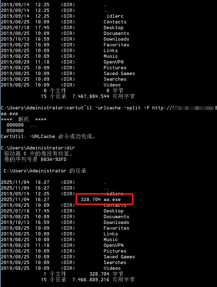 Certutil 可用于备份证书服务,支持从 Windows XP 到 Windows 10 的全系列系统。由于使用 Certutil 下载文件时,目标主机都会留下文件缓存,因此一般建议在下载完成后,及时对缓存文件进行删除操作。注意为Web投递要使用exe