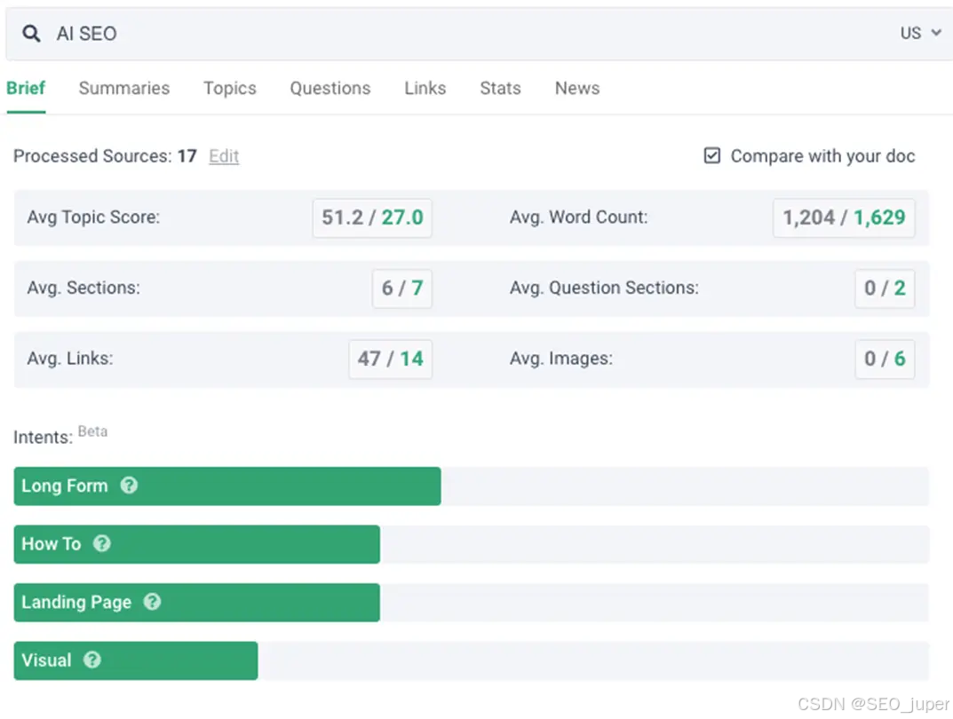 排名靠前的内容会被检查以确定搜索者是否需要信息、产品或本地服务。不再需要从关键字中猜测意图,您可以看到哪些类型的内容已经排名。