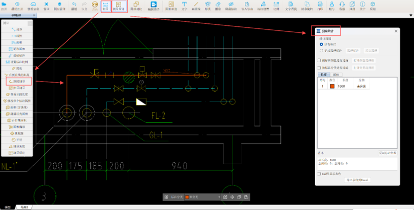 【连续测量】、【比例】、【测量统计】功能相互配合,可快速辅助计算供、回水管的工程量;【文字查找】功能则能迅速定位图纸信息,助我们高效读图。这些功能共同作用,大幅提升了供、回水管工程量计算的效率。