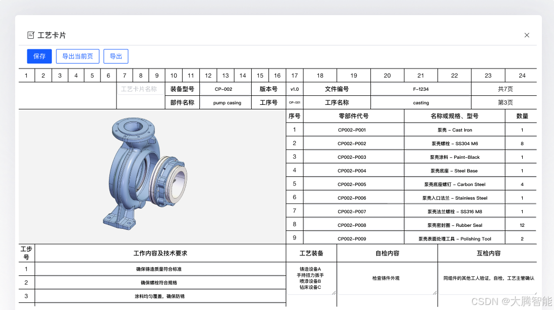 3D工艺大师还可可基于 CAD 模型快速生成 BOM 表单、技术插图和工艺卡片,工艺不再散落在 PPT 或 Excel,而是沉淀为可搜索、可追溯、可复用的数据资产。