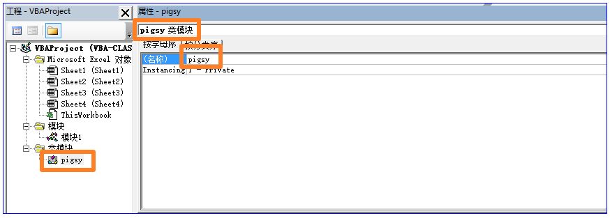 为了建立一个类,我们首先在VBE里面,选择插入菜单-类模块,一个空白的类模块就创建好了;接下来,我们现在要用这个类来模拟一个二师兄(pigsy);在上一讲中谈到,类的接口是由属性,方法,事件构成的,那么我们要模拟pigsy的哪些属性,方法,事件呢?