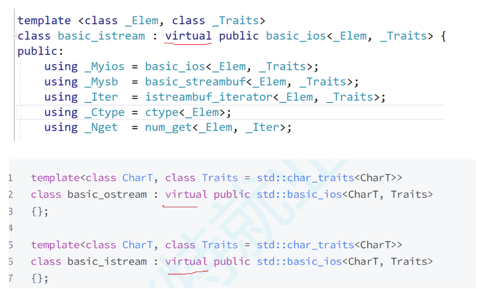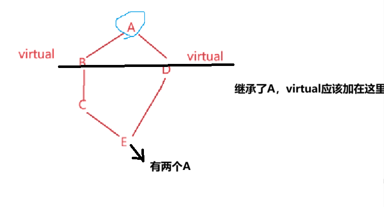 虚继承的关键字:virtual virtual是为了解决菱形继承二叉性的问题