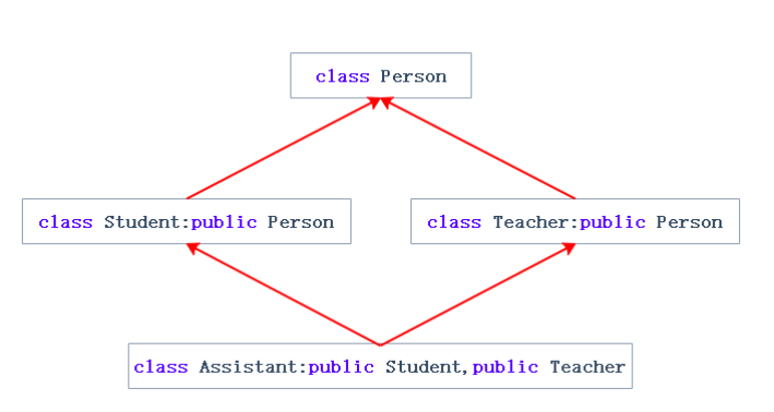 菱形继承:菱形继承是多继承的一种特殊情况。菱形继承的问题,从下面的对象成员模型构造,可以看出菱形继承有数据冗余和二义性的问题,在Assistant的对象中Person成员会有两份。支持多继承就一定会有菱形继承,像Java就直接不支持多继承,规避掉了这里的问题,所以实践中我们也是不建议设计出菱形继承这样的模型的。