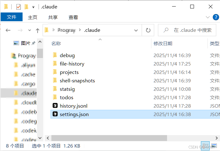首先找到 Claude 的配置 settings.json ,一般情况下,它位于当前用户目录下的 .claude 目录下,可以通过如下路径快速访问到