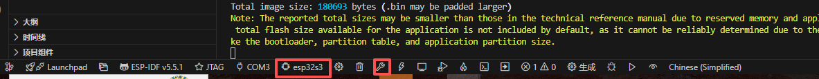3.芯片选s3,然后直接构建即可,第一次有点慢是正常的,build成功完后会弹出size