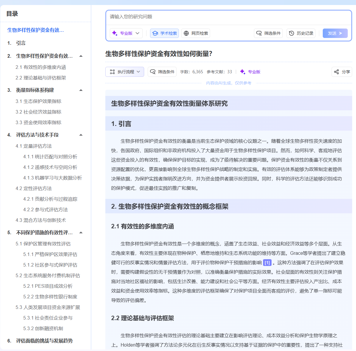 - Deep Search:输入研究问题,系统自动整合3亿+文献相关核心结论,生成调研报告;