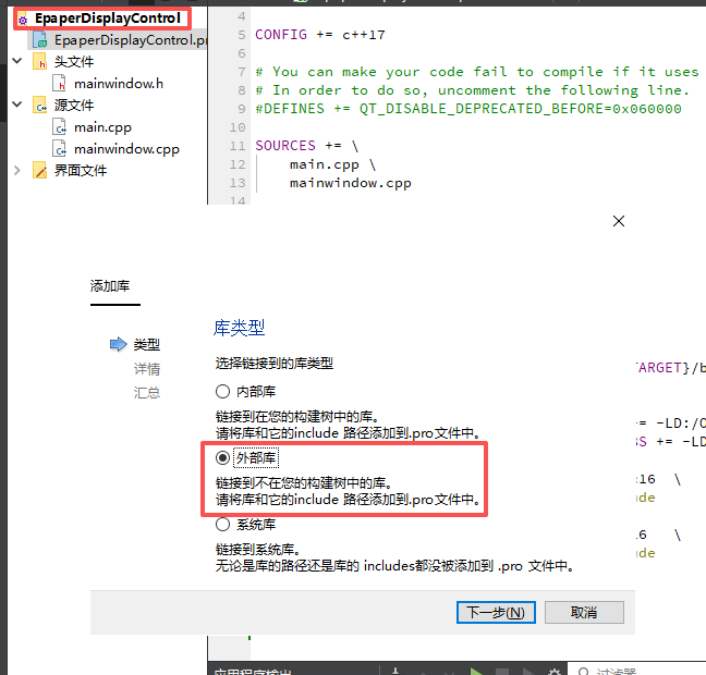 右键项目,选择“添加库”,弹出如下窗口,选择“外部库”