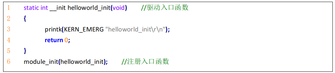 本小节来编写一个最简单的驱动——helloworld 驱动。其程序 helloworld.c 代码如代码清单