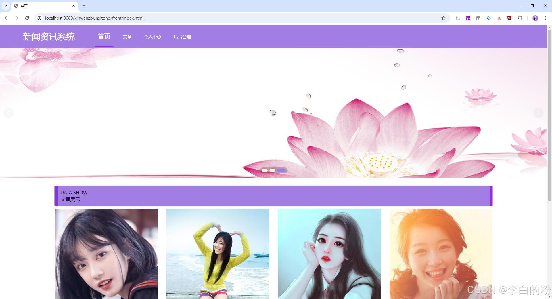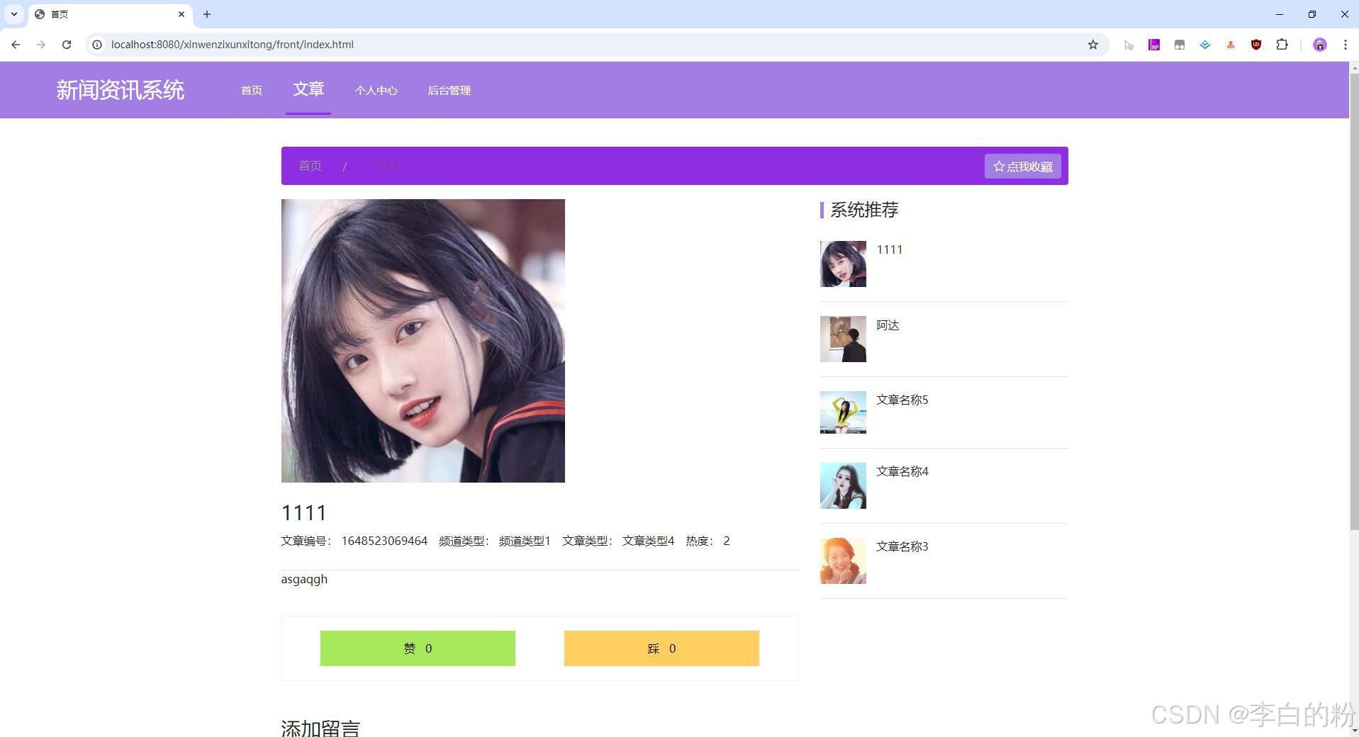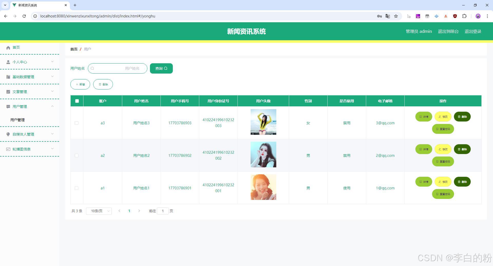 基于springboot的新闻资讯系统,前端采用html+vue,后端采用springboot+mybatis,系统采用MVC三层架构,角色:管理员、自媒体人、用户,系统功能齐全,代码简洁易懂,适合小白学编程...