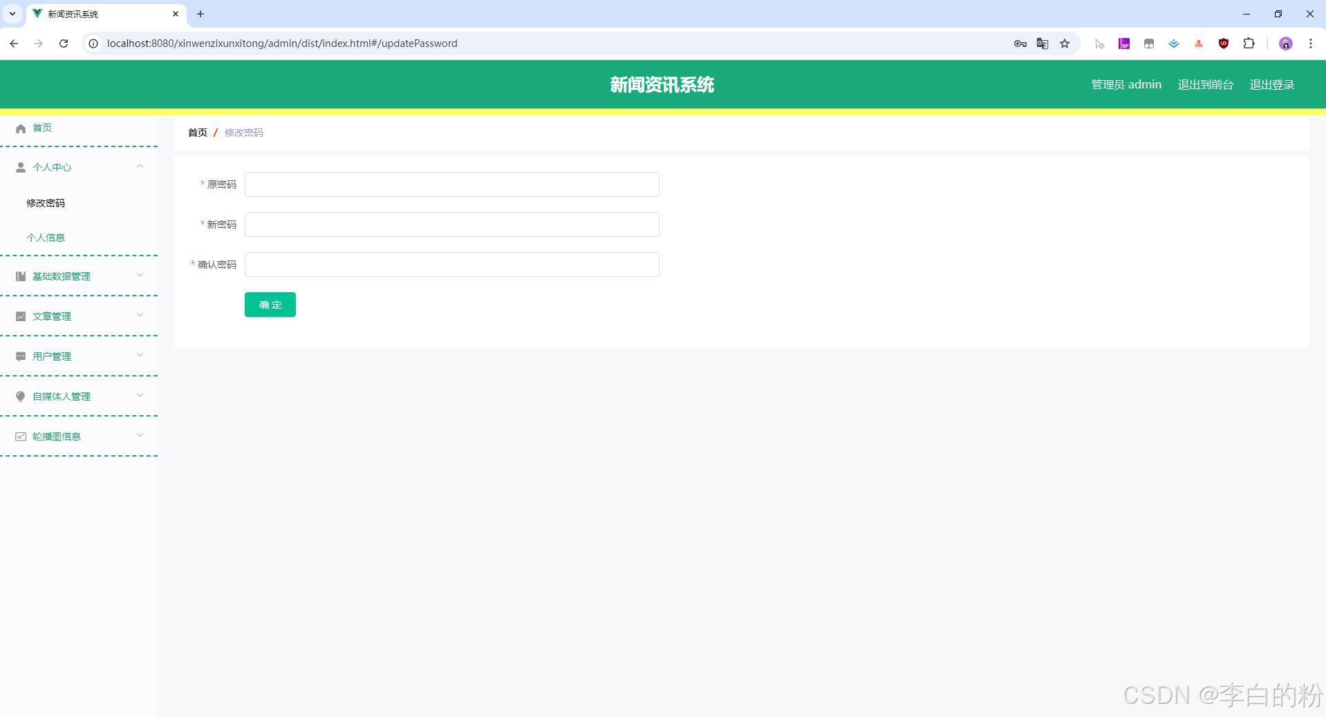 10. 管理后台-个人中心