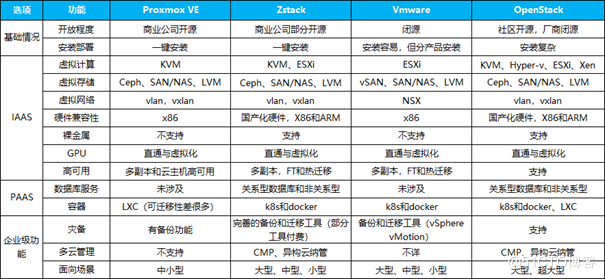 Proxmox VE与ZStack、VMware、OpenStack比较
