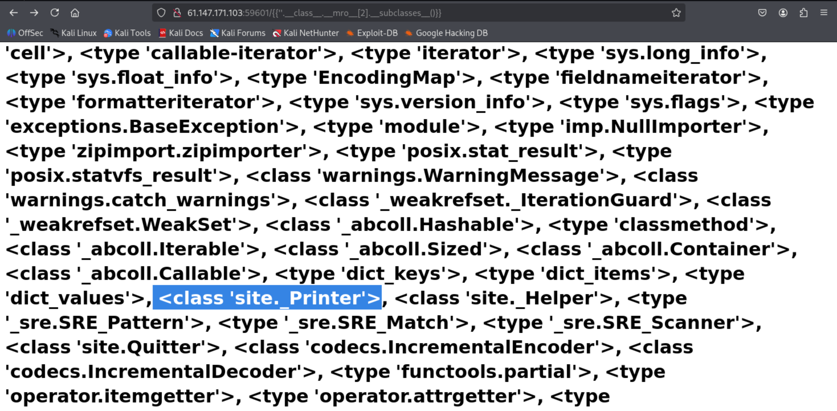 可以看到有一个 <class 'site._Printer'>类型(可以进行命令执行)
