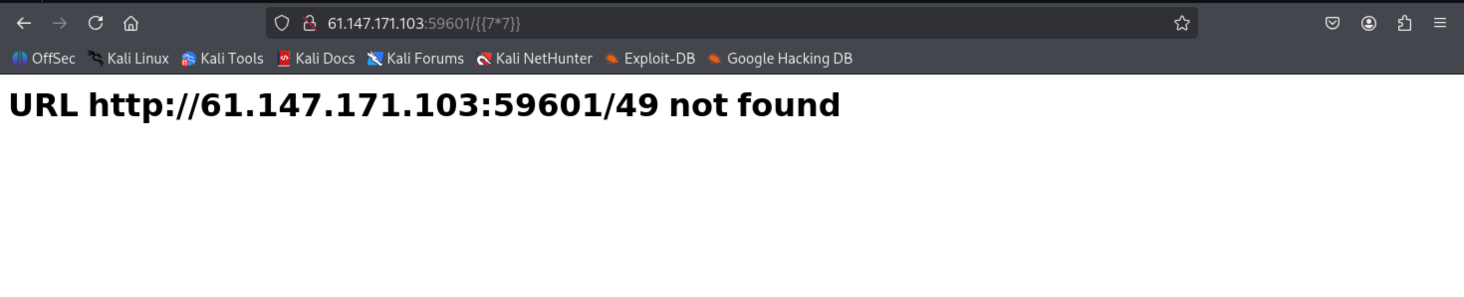首先我们使用payload:{{7*7}}来探测,发现结果为49,存在SSTI漏洞。