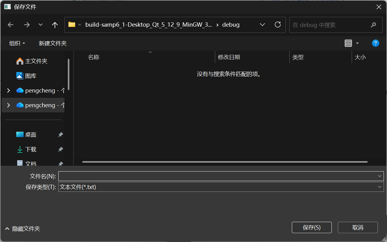 {//保存文件QString curPath=QCoreApplication::applicationDirPath(); //获取应用程序的路径QString dlgTitle="保存文件"; //对话框标题QString filter="文本文件(*.txt);;h文件(*.h);;C++文件(.cpp);;所有文件(*.*)"; //文件过滤器QString aFileName=QFileDialog::getSaveFileName(this,dlgTitle,curPath,filter);if (!aFileName.isEmpty())ui->plainTextEdit->appendPlainText(aFileName);