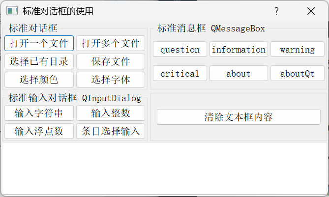 《Qt 5.9 C++开发指南》中6.1章即为标准对话框的开发,主界面如下: