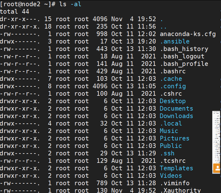 3、查看root用户的家目录下的所有文件以及查看对应的文件属性