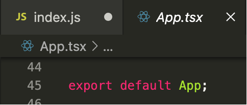 App文件中使用export关键字导出了一个App组件,该组件可在index.js中通过import引入。