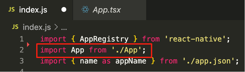 在demo工程的index.js文件中,通过import App from './App'语句导入App模块。./表示当前目录,因此该语句表示从同级目录下的App文件导入内容。
