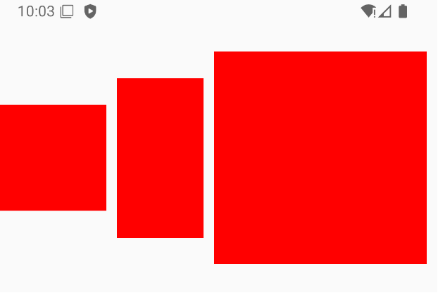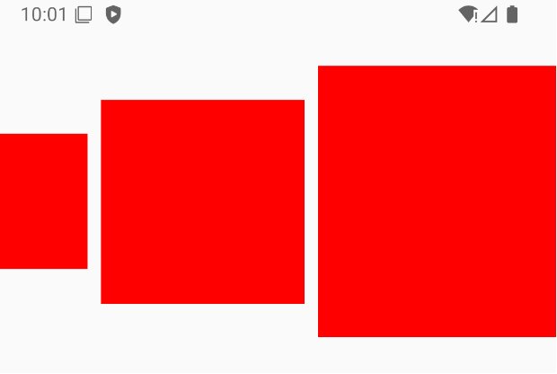 child1: {width: 100,height: 100,backgroundColor: 'red',marginRight: 10,},child2: {width: 150,height: 150,backgroundColor: 'red',marginRight: 10,},child3: {width: 200,height: 200,backgroundColor: 'red',marginRight: 10,},