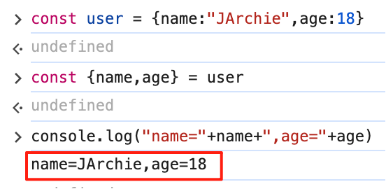 基本语法:通过const {name, age} = user直接从对象user中提取属性