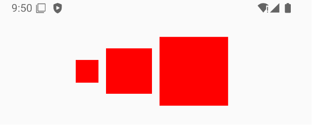 }const styles = StyleSheet.create({container: {width: '100%',display: 'flex',flexDirection: 'row',justifyContent: 'center',alignItems: 'center',marginTop: 50,},child1: {width: 30,height: 30,backgroundColor: 'red',marginRight: 10,},child2: {width: 60,height: 60,backgroundColor: 'red',marginRight: 10,},child3: {width: 90,height: 90,backgroundColor: 'red',marginRight: 10,},
