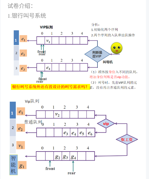 {//顺序表中定义长度为2的队列数组:vip队列(0索引)和普通队列(1索引) SqQueue Q[2];
