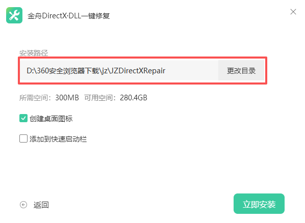 第一步:访问金舟DirectX·DLL一键修复工具官网下载工具,安装时建议不要放置C盘,防止系统盘空间不足。