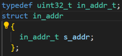 其中cp是字符串指针,指向字符串IP;成功返回值为返回转换后的32位网络字节序地址,失败返回-1。