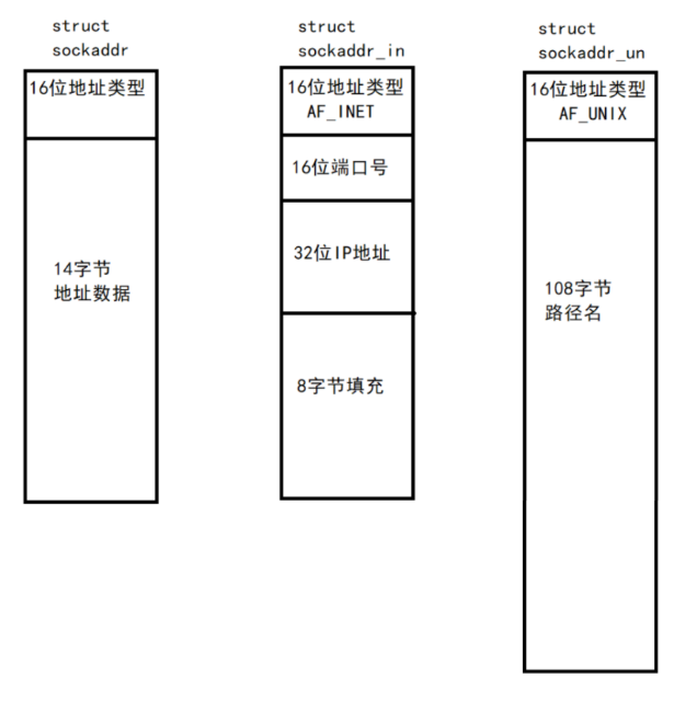 注:IPv4、IPv6类型分别定义为常数AF_INET、AF_INET6,这样,只要取得某种结构体的首地址,不需要知道具体是哪种类型的结构体,就可以根据类型字段确定结构体中的内容。