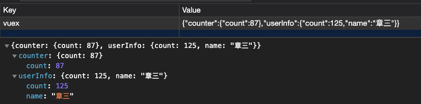 vuex-persistedstate 插件会自动处理将 counter 和 userInfo 模块的状态保存到本地存储中。即使刷新页面,状态仍然能够保留。