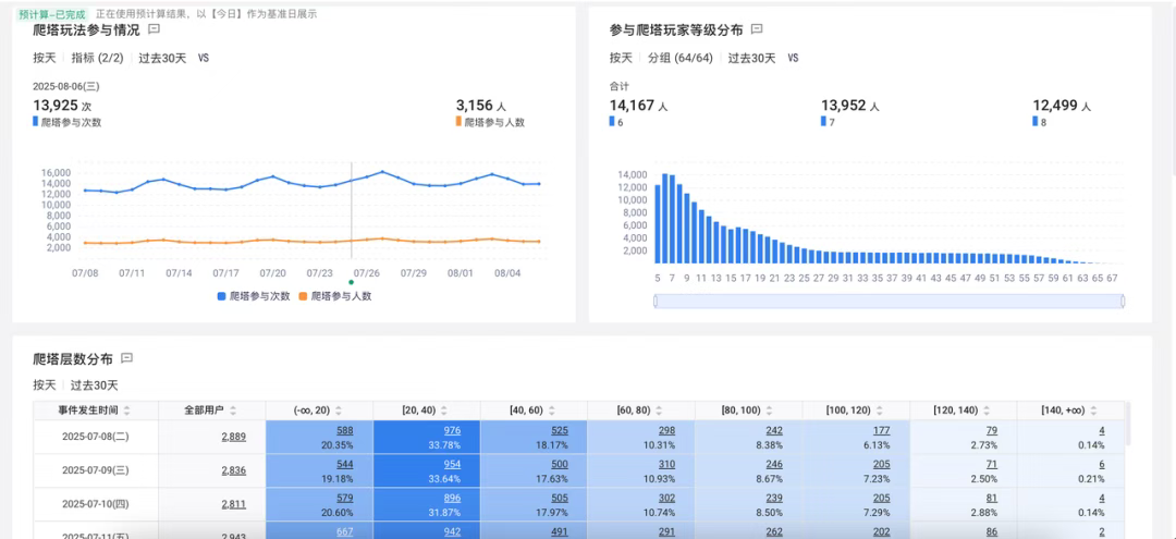 数据表明,某批流失用户的爬塔层数集中于20-40关,平均等级位于3-11级区间。
