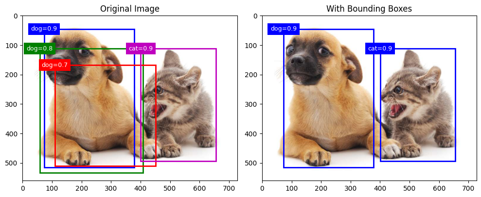 show_bboxes(ax1, anchors * bbox_scale,['dog=0.9', 'dog=0.8', 'dog=0.7', 'cat=0.9'])