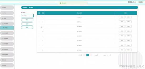 收入类别管理;在收入类别管理页面输入收入类别进行查询,新增或删除收入类别详细信息如图5-8所示。