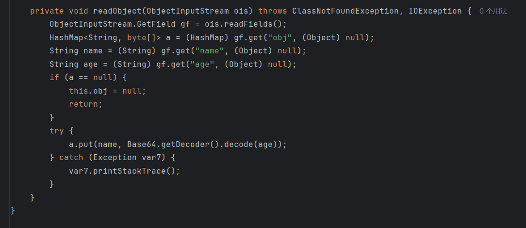 然后我们重新看看UserBean.java,里面的name、age都可控,obj可控因此a也可控,且内容age会进行base64解码后再写入