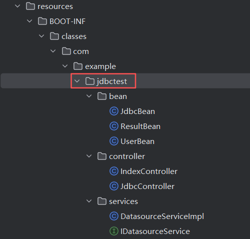 用IDEA打开导出的源码,进入com/example/jdbctest目录分析