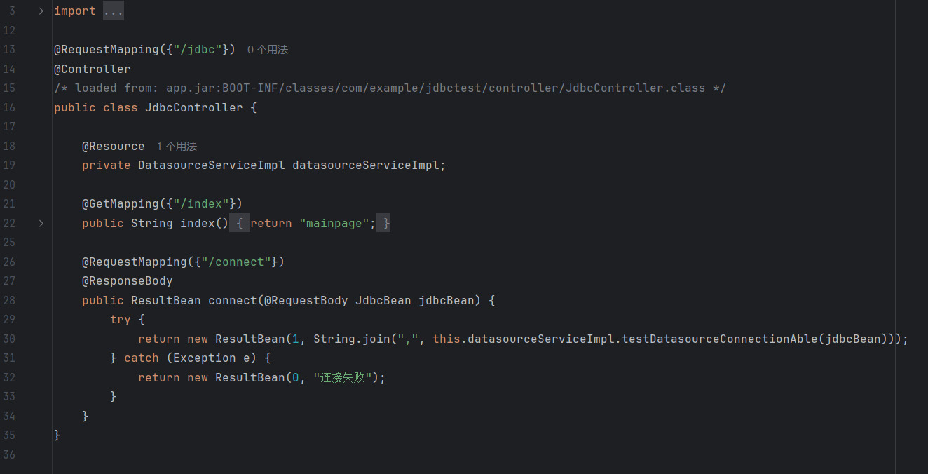 分析发现controller/JdbcController.java定义了请求路由