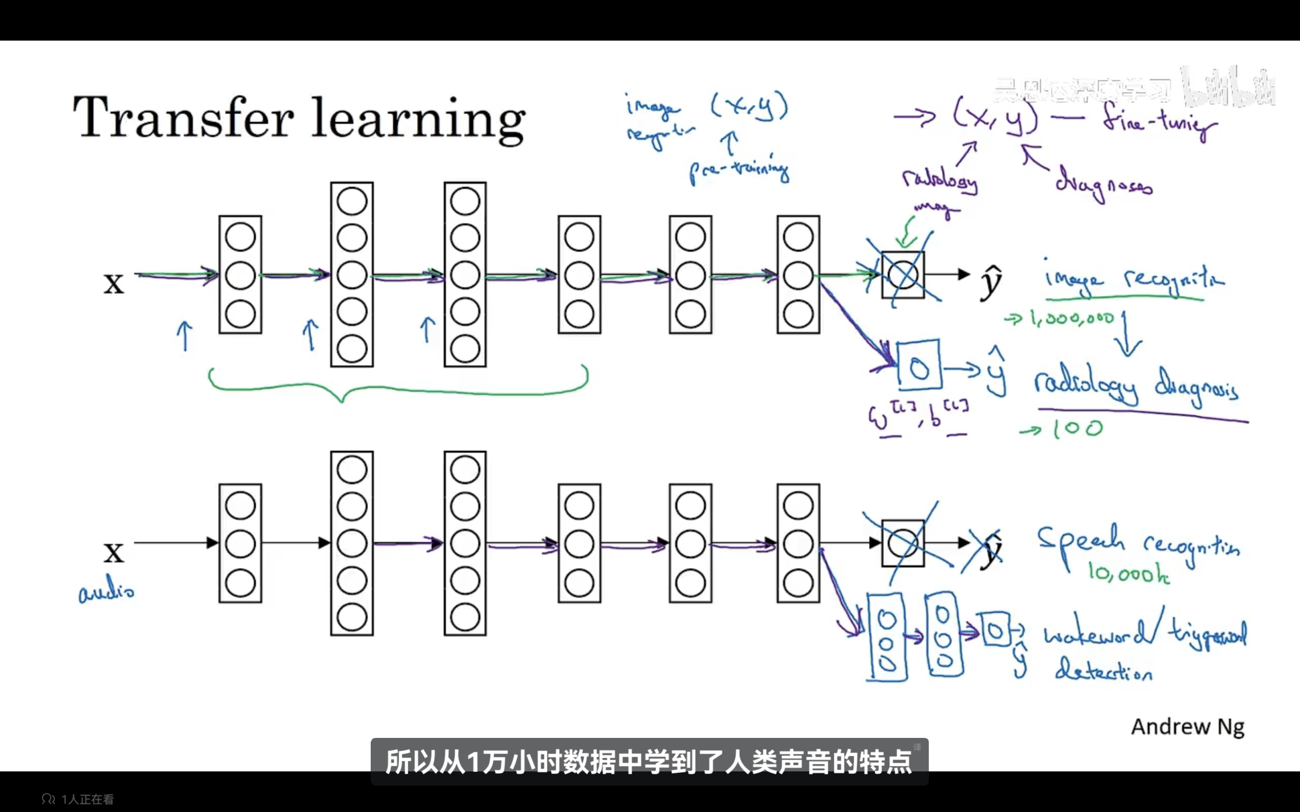 迁移学习:进行一个初识的预训练:进行图像识别训练,训练完成之后更改数据集重新训练整合神经网络或者重新训练神经网络最后几层,更新权重,以适应新的数据集(微调)。意味着将从图像识别中学到的知识(学习到图像的结构和外形)应用到其他数据中去。迁移学习适用于源问题有大量数据而目标问题数据相对较少。示例如下: