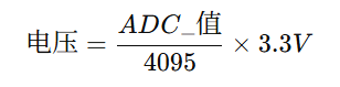 ADC 返回的是一个数字值(0~4095),你需要根据公式换算成实际电压或物理量:
