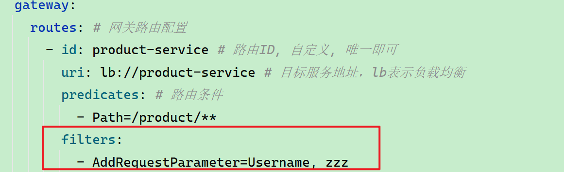 每个过滤器的逻辑都是固定的,比如 AddRequestParameterGatewayFilterFactory 只需要在配置文件中写 AddRequestParameter,就可以为所有的请求添加一个参数。