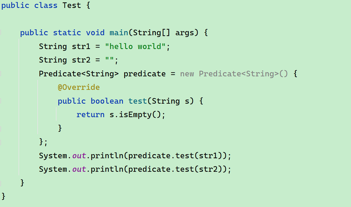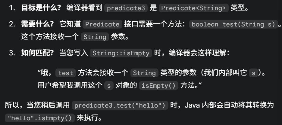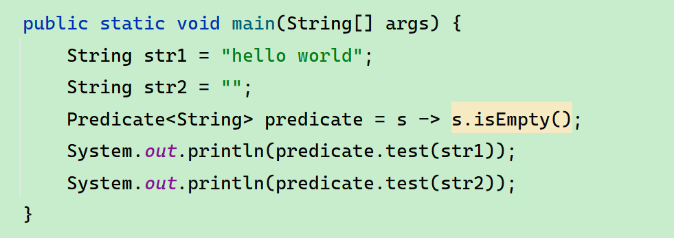这行代码 Predicate<String> predicate3 = String::isEmpty; 的意思是: