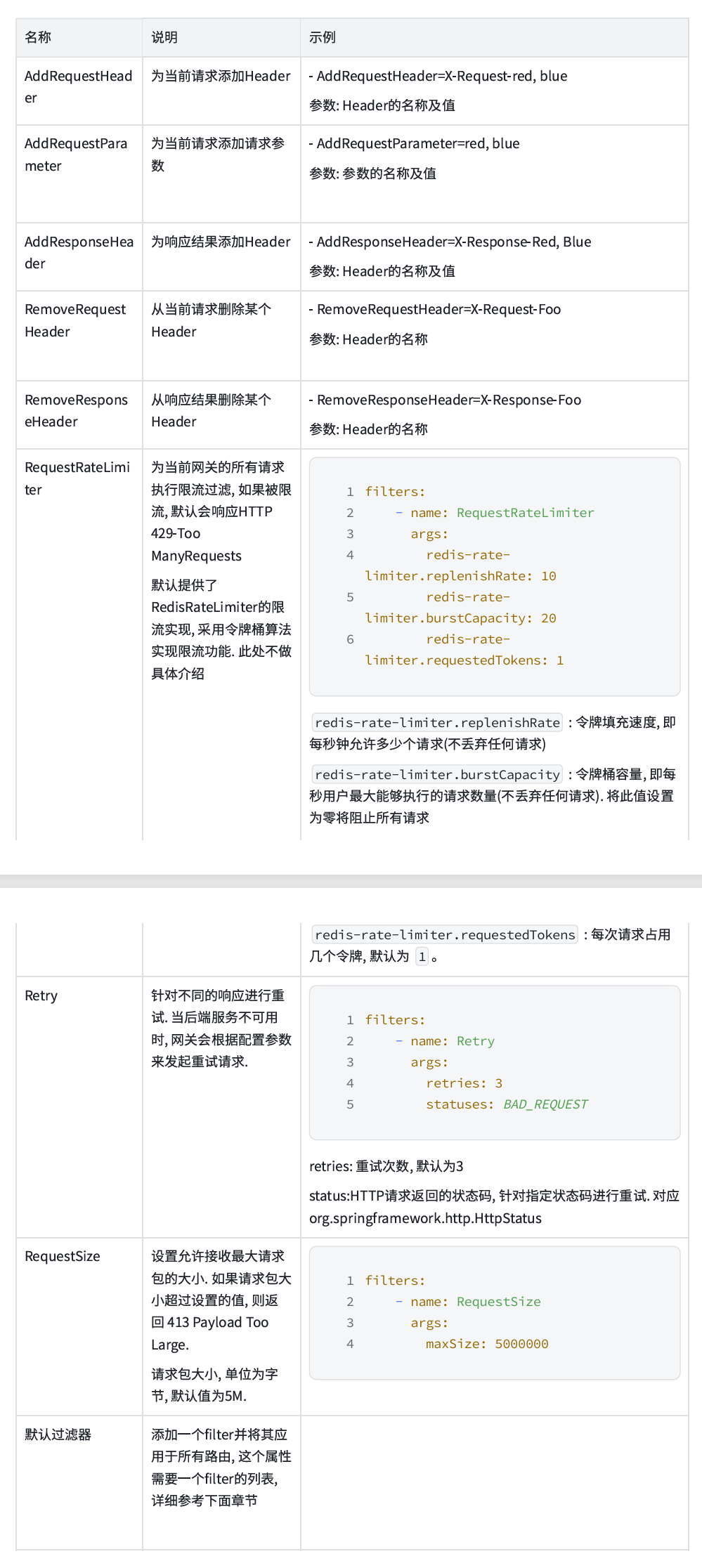 Spring Cloud Gateway 提供了的 Filter 非常多,官方参考文档:qGatewayFilter Factories